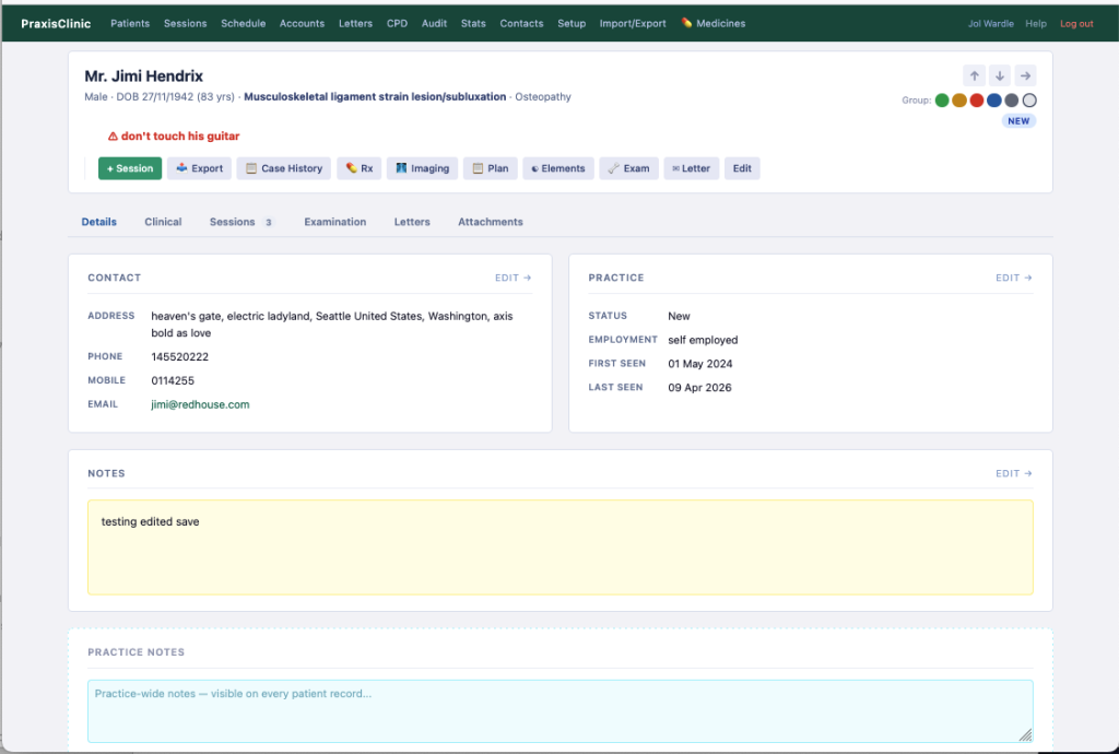 We've recently completely upgraded our Practice Management Software for Osteopaths and similiar complementary independent therapists. It was designed to augment detailed written case histories and allow speedy input at the end of the day.